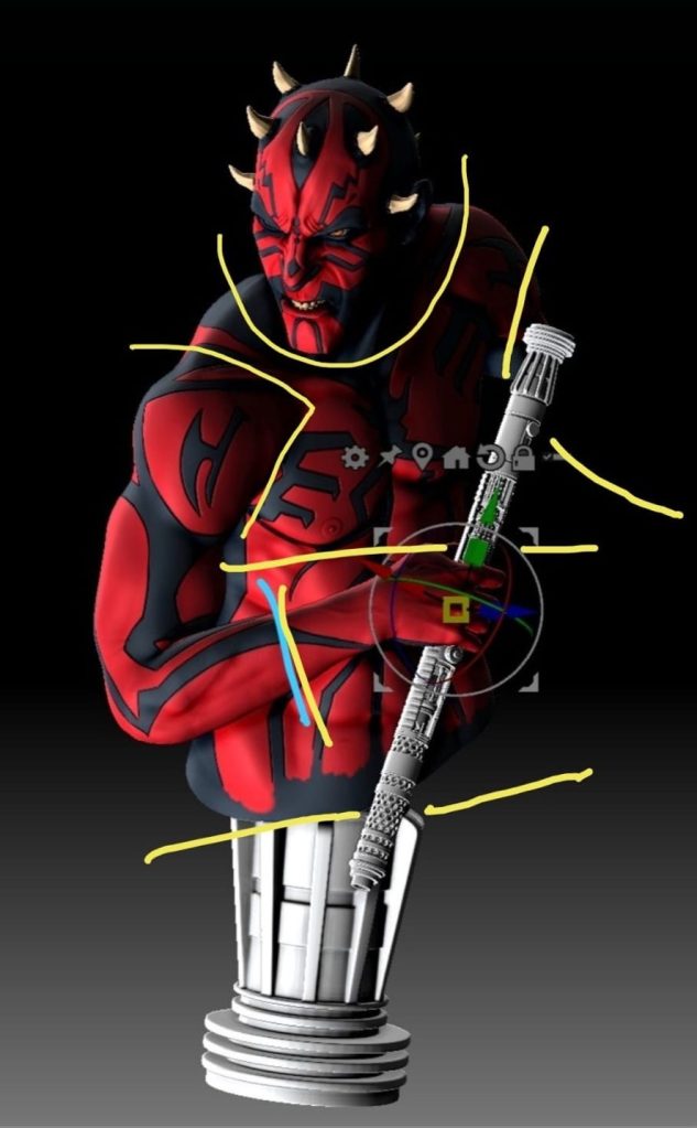 - Definió los cortes estratégicos para dividir el busto